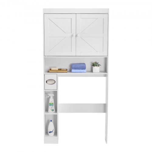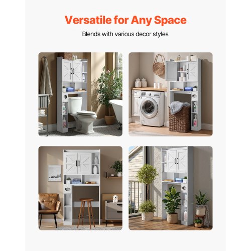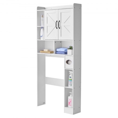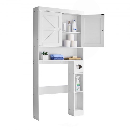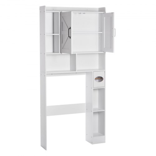 VEVOR Mobiletto Portaoggetti Sopra WC 1713 x 815 x 195 mm Organizzatore per Bagno, Capacità di Carico di 30 kg con Doppia Anta e Ripiano Regolabile, Mobile da Bagno con Ripiano Aperto, Bianco
