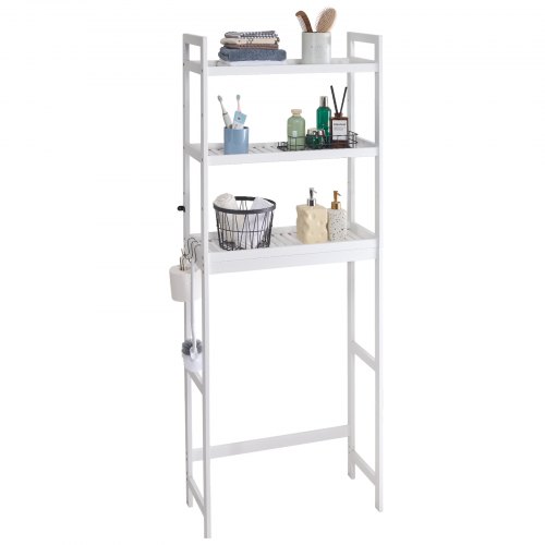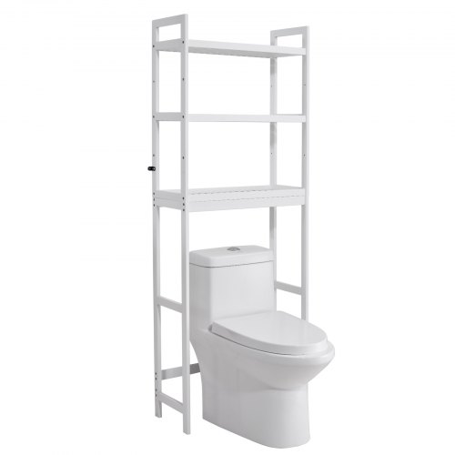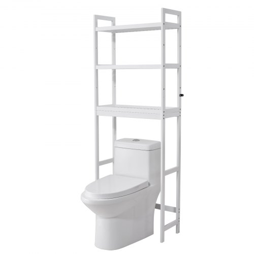 VEVOR Scaffale per WC, Mobile Portaoggetti Regolabile a 3 Ripiani sopra il WC, Mensola per Bagno con 3 Ganci, Organizzatore per Lavanderia, Si Adatta alla Maggior Parte dei WC, Bianco