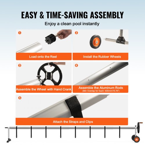 VEVOR Rullo Avvolgibile per Copertura Solare per Piscina in Alluminio 2,62-6,02 m con Ruote in Gomma, Sistema di Avvolgimento per Telone da Piscine Interrate, Rullo Arrotolatore per Telo da Piscina