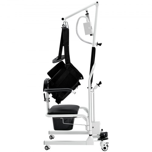 VEVOR Sedia da Trasferimento Elettrica per Pazienti, Sedia a Rotelle con Imbracatura, Altezza Regolabile, Sedia Doccia Comoda da Comodino, Sedile Diviso a 180° e Padella per Anziani Disabili 99,7 kg