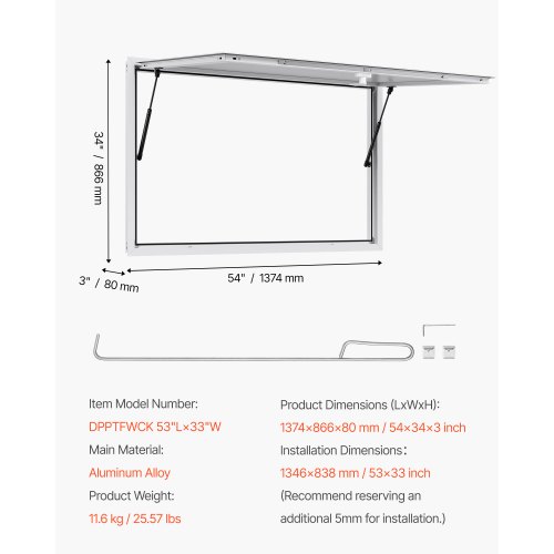 VEVOR Sportello per Concessioni 1346 x 838 mm Finestra per Camion di Cibo in Lega di Alluminio, Apertura Fino a 85 Gradi con Porta a Tenda e Gancio di Traino, Resistente all'Acqua Piovana
