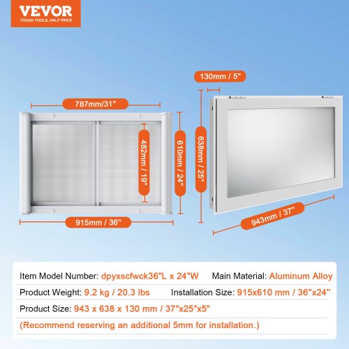 VEVOR Finestra per Camion di Cibo, 9165 x 610 mm, Finestre di Servizio per Tendalino Antipioggia con Cornice in Alluminio per Rimorchi Alimentari, con Apertura a 85° per Camion di Cibo