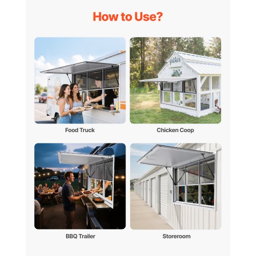 VEVOR Sportello per Concessioni 915 x 915 mm Finestra per Camion di Cibo con Telaio in Lega di Alluminio, Apertura Fino a 85 Gradi con Porta a Tenda e Gancio di Traino, Resistente all'Acqua Piovana