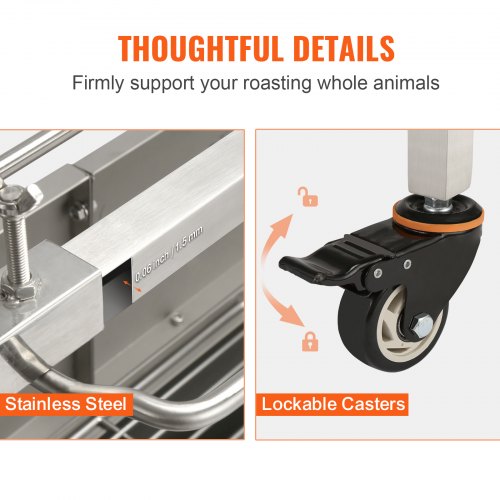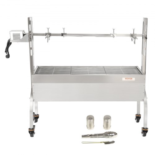 VEVOR Girarrosto Spiedo BBQ 50W in Acciaio Inox Manuale/Elettrico Capienza Max. 60 kg Altezza Regolabile 19-43,2 cm con Ruote, Kit di Girarrosto Spiedo per BBQ Festa Evento Esterno Lunghezza 117 cm