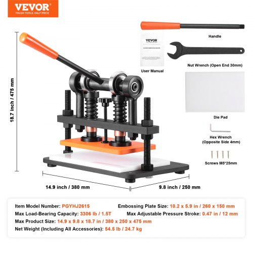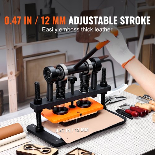 VEVOR Macchina per Goffratura Pelle Cuoio 260x120 mm Capacità 1,5 T, Fustellatrice Manuale Corsa Regolabile 12 mm Perforatrice Goffratura Manuale per Pelle Carta Espanso Plastica Gomma Vari Materiali