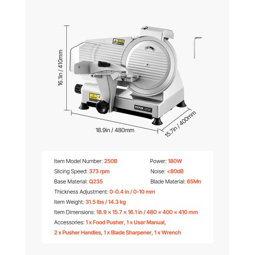 VEVOR Tagliacarne Elettrico 180 W Affettatrice Carne Surgelata, 2 Lame in Acciaio Inossidabile di Alta Qualità, 95 Giri al Minuto, Spessore Regolabile 0-15 mm, Affettatrice Elettrica per Carne, Pane