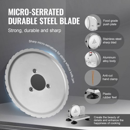 VEVOR Affettatrice Carne, Affettatrice Elettrica da 180 W con Lama in Acciaio Inossidabile SUS420 da 19,05 cm e Protezione Lama, Spessore Regolabile da 0 a 1,524 cm per Uso Domestico, Facile da Puli