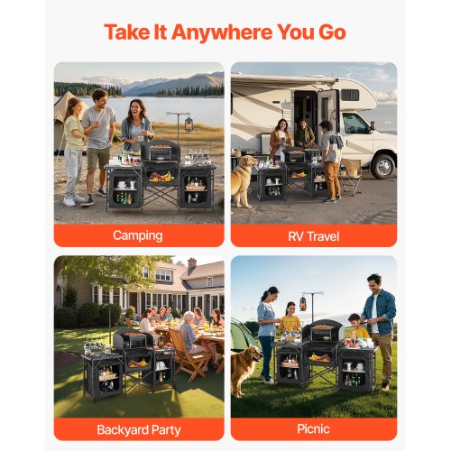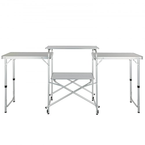 VEVOR Cucina da Campeggio per Cottura Pieghevole Portatile Ripiani Portautensili Materiale in Alluminio Ferro Dimensioni Estese 174 x 50 x 160 cm, Tavolo Pieghevole Portaoggetti da Campeggio per BBQ