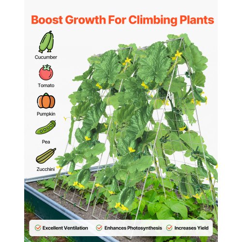 VEVOR Traliccio per Cetrioli per Piante Rampicanti 90 x 140 cm Set di Tralicci per Cetrioli Pieghevoli con Clip per Piante, Traliccio da Giardino in Metallo per Aiuole Rialzate, per Pomodori, Verdure