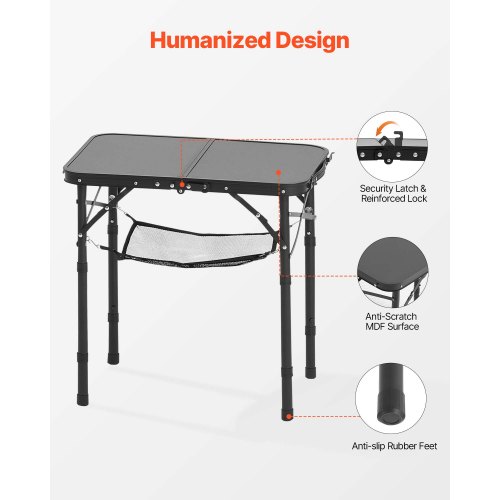 VEVOR Tavolo da Campeggio Pieghevole in Tessuto Oxford 600D Impermeabile, Tavolo da Picnic Portatile e Leggero per Esterni con 4 Portabicchieri e Borsa per Trasporto, per Picnic in Campeggio, Nero