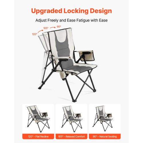 VEVOR Sedia da Campeggio Pieghevole, 3 Posizioni Reclinabili, Sdraio da Campeggio con Schienale Alto per Esterni, Capacità di Carico di 117 kg, Sedie da Spiaggia con Braccioli Poggiatesta