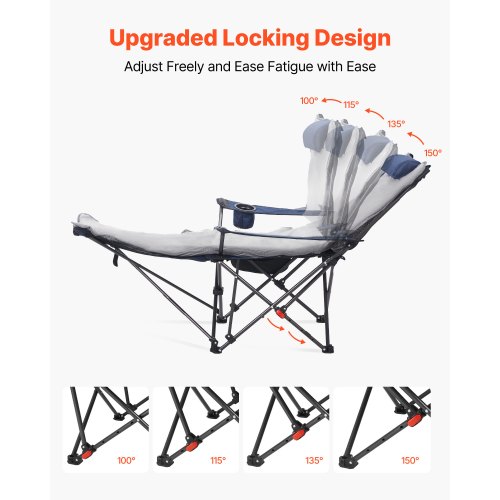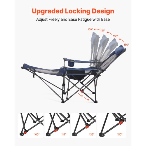 VEVOR Sedia da Campeggio Reclinabile, 4 Posizioni Regolabili, Sdraio Pieghevole Portatile per Adulti, in Rete con Poggiapiedi e Poggiatesta, Supporta 99,8 kg, Sedie da Campeggio per Patio, Blu