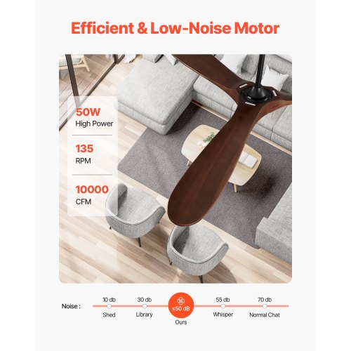 VEVOR Ventilatore da Soffitto Senza Luce da 180 cm Moderno Ventilatore Esterno a Filo a Basso Profilo, Telecomando a 6 Velocità, 3 Pale in Legno, Motore CC Reversibile, per Soggiorno e Patio, Noce