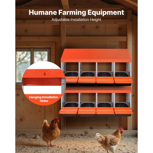 VEVOR Nido per Polli 1060 x 525 x 800 mm Nido per Galline a 8 Scomparti, Stabile Resistente alla Corrosione, con Nidi Inclinati, Fori sul Fondo e Piattaforma di Riposo, Adatto a Diverse Razze di Polli