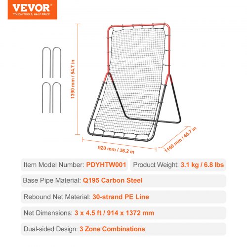 VEVOR Rete da Rimbalzo per Baseball e Softball 2 in 1, 914 x 1372 mm Switch Hitter Pitch Trainer, PitchBack Baseball Pitching Return Trainer Nest, Rete di Rimbalzo per Allenamento di Fielding/Lancio