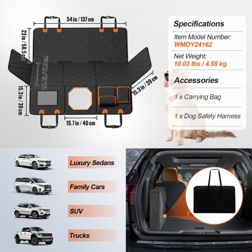 VEVOR Coprisedile per Auto per Cani per Sedile Posteriore, 1360 x 670 mm Impermeabile Antigraffio e Antiscivolo, 600D Resistente con Tasca Portaoggetti in Rete Finestre, Protezioni Sedili per SUV