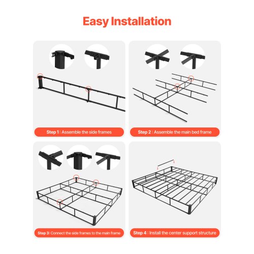 VEVOR Struttura per Letto Matrimoniale, con Scatola Primavera e Rivestimento in Tessuto Lavabile, Base per Materasso 13 cm, Altezza Massima Rete 180 cm Capacità 1587 kg 2010 x 1925 x 230 mm