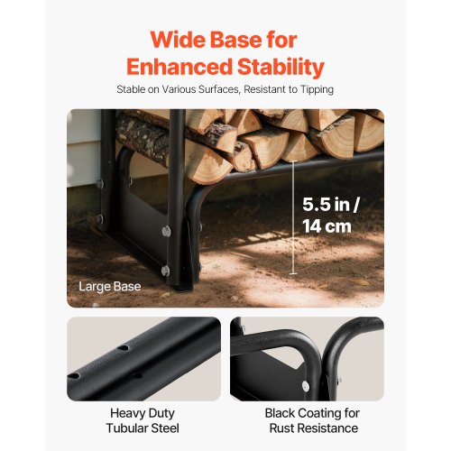 VEVOR Rack di Legna da Ardere Esterni Scaffale Porta-Legna da 183,5x36,2x122 cm, Capacità da 590 kg Legna da Ardere Log Rack in Acciaio Nero, Impilatore di Legno Scaffale Uso in Fattoria, Cortile