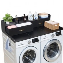 VEVOR Piano di Lavoro per Lavatrice e Asciugatrice con Ripiano 137 x 69,9 cm, Piano d'Appoggio per Lavatrice con 2 Cassetti Integrati e Ganci, Struttura in Legno con Ampia Superficie di Lavoro, Nero