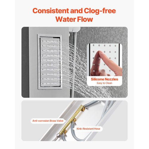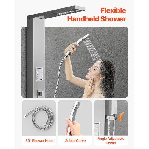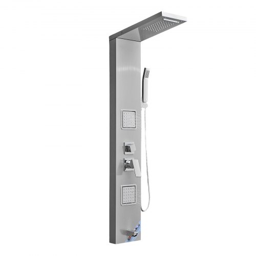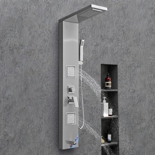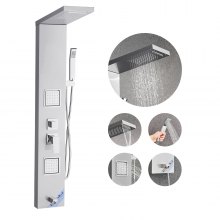 VEVOR Pannello Doccia con Soffione a Pioggia, Colonna Doccia in Acciaio Inox Spazzolato da 53 pollici, Rubinetto a 3 Funzioni, Massaggio a Pioggia ad Alta Pressione a Parete, Doccetta