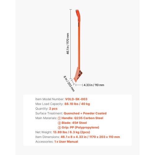 VEVOR Paletta per Tegole da 2 pezzi, Manico Impugnatura a D, Pala per Rimozione Tegole Acciaio ad Alta Durezza 45#, Larghezza 203mm, Strumento Leggero per Strappare Chiodi Tetti, Arancione
