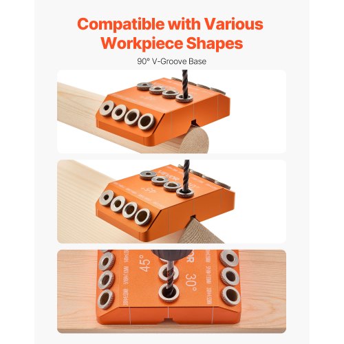 VEVOR Guida di Foratura, Angolo di 30/45/90 Gradi, 4 Misure, Dima per Tasselli Legno, per Fori Angolati od Orizzontali, Lega di Alluminio, per Ringhiere per Cavi di Ponti, Corrimano per Scale
