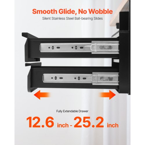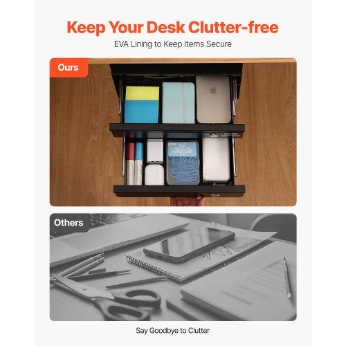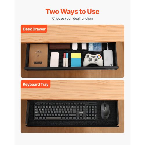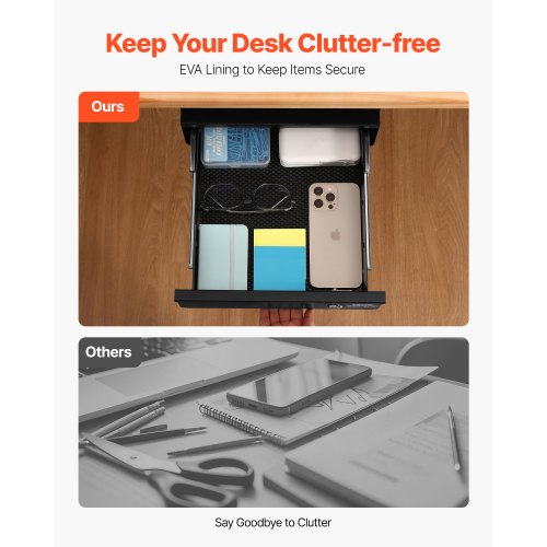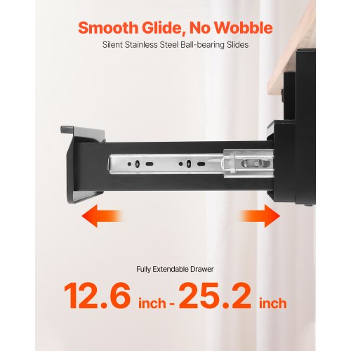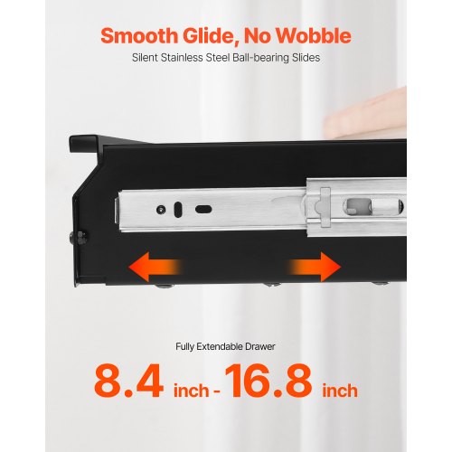 VEVOR Cassetto Estraibile Sotto Scrivania 440 x 223 x 101 mm Organizzatore Nascosto per Riporre Oggetti sulla Scrivania, Cassetto Portapenne Sotto Tavolo, per Postazioni di Lavoro da Ufficio, Nero