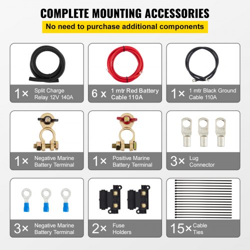 VEVOR Split Charge Kit Relè Batteria per Il Tempo Libero, JDQTJ-4M 12V CC Kit Relè di Carica con Cavo Batteria Rosso 140A per Veicoli Fuoristrada, Camper, Roulotte, Navi, Yacht, Applicazioni Marine