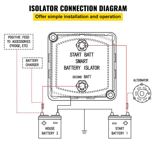 VEVOR Split Charge Kit Relè Batteria per Il Tempo Libero, JDQTJ-2M 12V CC Kit Relè di Carica con Cavo Batteria Rosso 110A per Veicoli Fuoristrada, Camper, Roulotte, Navi, Yacht, Applicazioni Marine