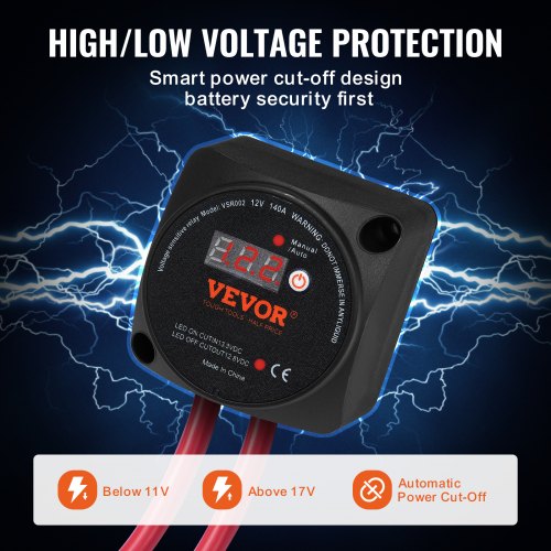VEVOR Kit Isolatore Doppia Batteria, 12 V 140 A, Manuale e Automatica Relè Sensibile alla Tensione VSR con Schermo LCD, Isolatore Batteria per ATV UTV RV Camper Fuoristrada Caravan Camion Barca Yacht