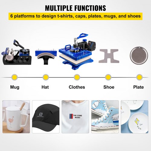 VEVOR Pressa a Caldo 5 in 1 da 1250 W, Termopressa per Sublimazione Piastra da 29 x 38 cm, Uso per Magliette, Federe, Cappelli, Tazze, Custodie per cellulari, Collari per Animali, Piatti in Ceramica