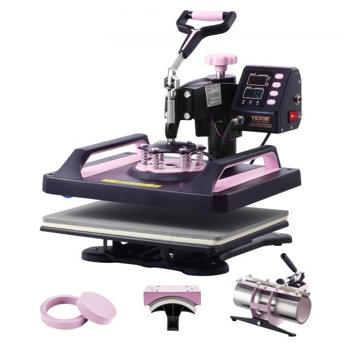 VEVOR 5 in 1 Macchina Pressatura a Caldo 290x380 mm Pressa a Tamburo Nero Rosa