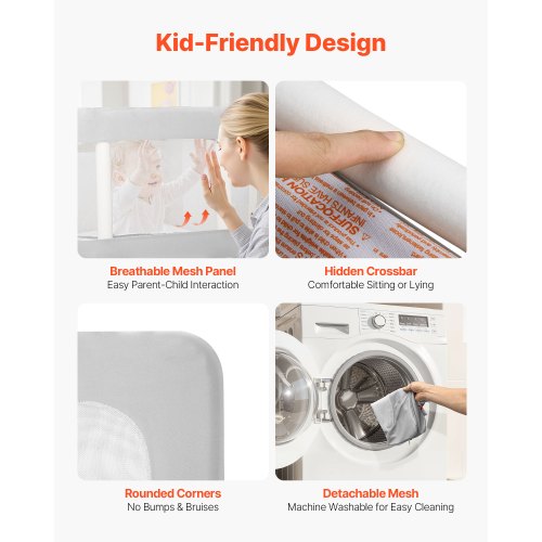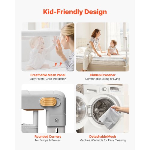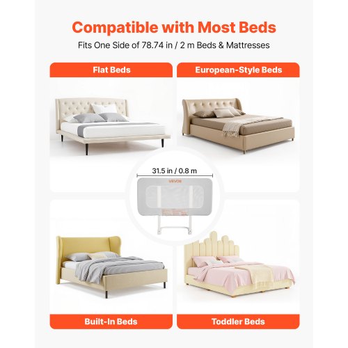 VEVOR Sponda per Letto per Bambini Lunghezza 80 cm, Barriera per Lettino per Neonati con Tubo di Ferro Rinforzato, Tessuto Oxford, Altezza Regolabile 45-67 cm, per Materassi di Spessore 5-30 cm