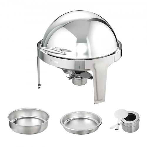 VEVOR Set di Scaldavivande 2 Pezzi in Acciaio Inox per Servizio Buffet Catering Ristorazione Coperchio Arrotolabile Capienza Max. 5,5L, Set di Vassoio di Riscaldamento Scaldavivande Rotonda per Buffet