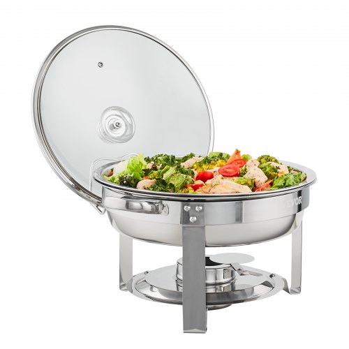 VEVOR Set di Scaldavivande 2 Pezzi in Acciaio Inox per Servizio Buffet Catering Ristorazione Coperchio in Vetro Capienza Max. 3,5 L, Set di Vassoio di Riscaldamento Scaldavivande Rotonda per Buffet