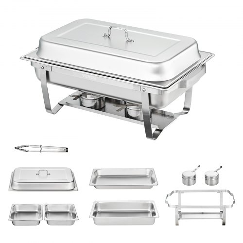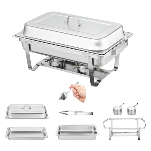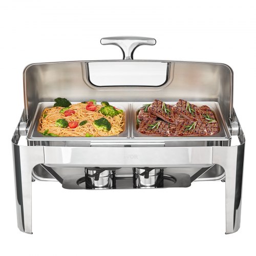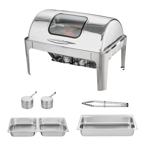 VEVOR Set di Scaldavivande in Acciaio Inox per Servizio Buffet Catering Vassoio Sostituibile Capienza Max. 8,5L, Set Vassoio di Riscaldamento Scaldavivande Rettangolare Coperchio Arrotolabile Visibile