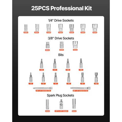 VEVOR Set di bussole per avvitatore a percussione da 3/8 e 1/2 pollici, Set di 59 bussole SAE da 5/16 a 1-1/4 pollici e metrico 6-32 mm, Acciaio legato Cr-Mo a 6 punti per riparazioni auto officina