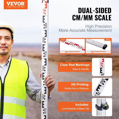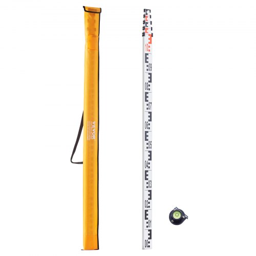 VEVOR Asta di Misurazione 5 m Asta di Misurazione Telescopica Metrica in Alluminio, Scala Bifacciale in CM/MM Asta di Livellamento, Livella a Bolla e Borsa da Trasporto per Misurare Case, Pavimenti