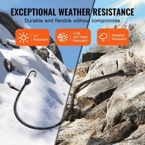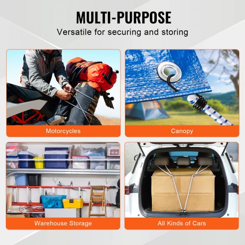 VEVOR Corde Elastiche con Ganci in Acciaio A3, Cinghie Elastiche Resistenti da 0,8 m Set di Corde Elastiche da 8 mm Carico Massimo di 25 kg per Campeggio, Teloni, Motociclette, Tende, Nero, 12 Pezzi
