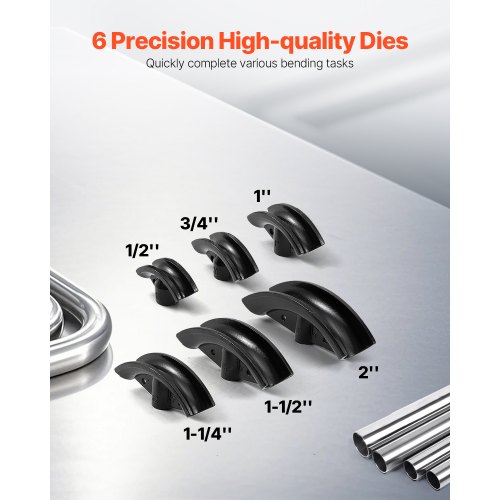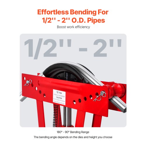 VEVOR Piegatubi Idraulico Piegatubi per Tubi Scarico in Rame 12 Tonnellate 6 Matrici (1/2'', 3/4'', 1'', 1-1/4'', 1-1/2'', 2''), Rulli Regolabili da 90° a 180° per Tubi in Metallo, Piegatubi Manuale