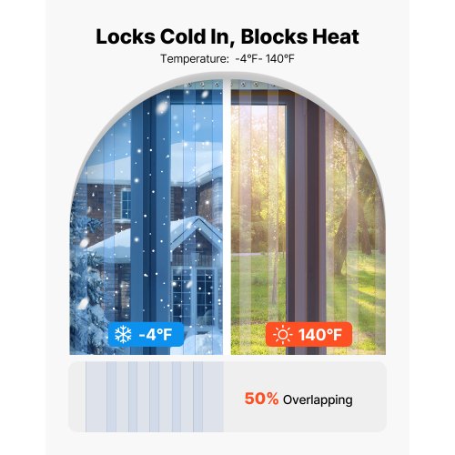 VEVOR Tenda a Strisce in PVC Trasparente Rotolo di Tenda PVC Lunghezza 3048cm per Porta di Magazzini Capanni per Animali Fattorie Commerciale, Porta a Strisce 20 cm x 3048cm PVC Trasparente -20℃-60℃