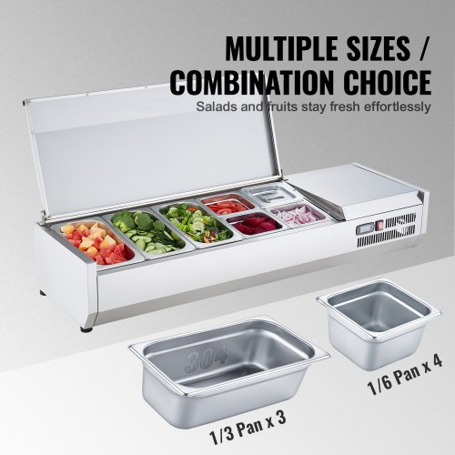 VEVOR Stazione di Preparazione Refrigerata per Condimenti da Banco 140 W Stazione di Preparazione per Frigorifero 1 Vaschetta 1/3, 4 vaschette 1/6, Tavolo per Preparazione in Acciaio Inossidabile
