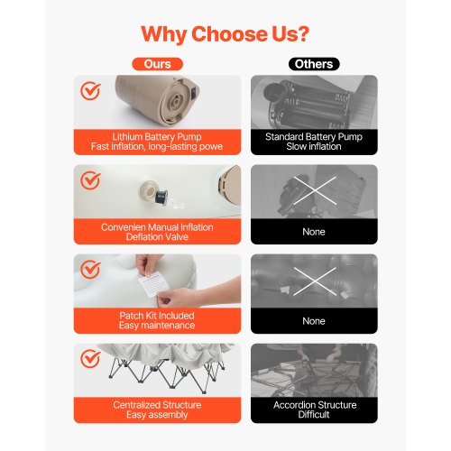VEVOR Materasso ad Aria Singolo con Telaio, Materasso Gonfiabile Portatile Pieghevole per 2 Persone, Supporta 272 kg con Pompa e Custodia per Trasporto con Ruote, Letto ad Aria a Gonfiaggio Rapido