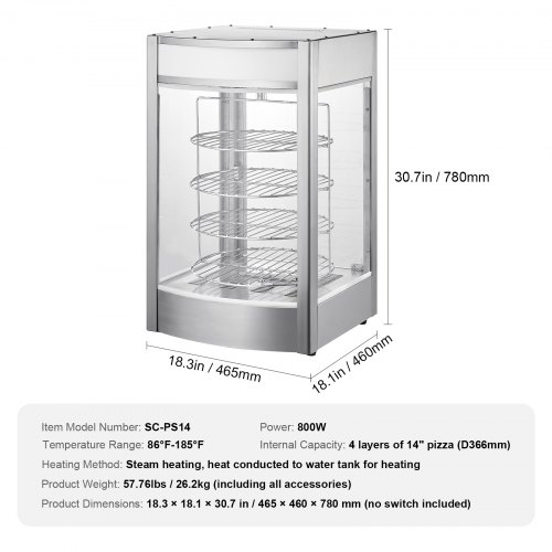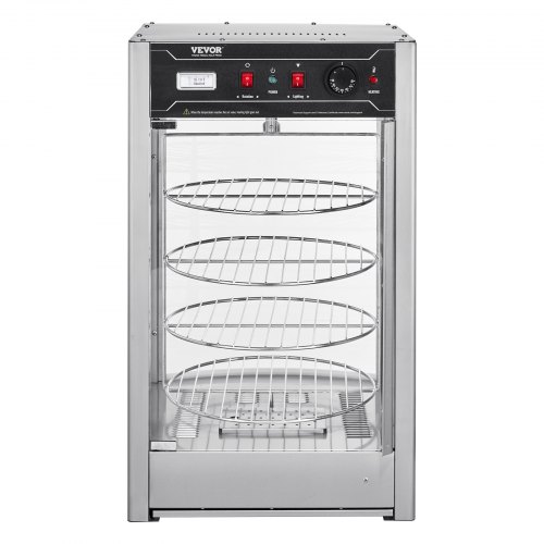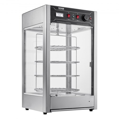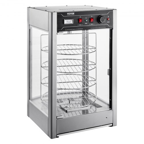 VEVOR Espositore Scaldavivande Commerciale per Pizza 366 mm Scaldavivande a 4 Ripiani con Riscaldamento a Vapore Rotante, Controllo della Temperatura da 30 ℃ a 85 ℃ Luce del Forno 25 W per Pizzeria