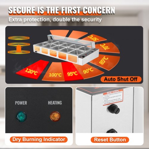 VEVOR Scaldavivande Commerciale con 9 Recipienti (5,5 L / 1/3 Dimensioni Ciascuno) Tavolo a Vapore Elettrico con Copertura in Vetro 1500 W Scaldavivande da Tavolo, Controllo della Temperatura 30-85 °C