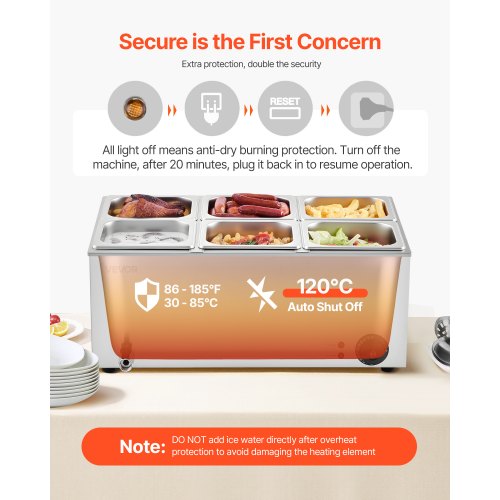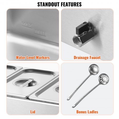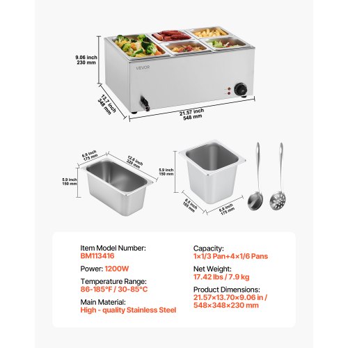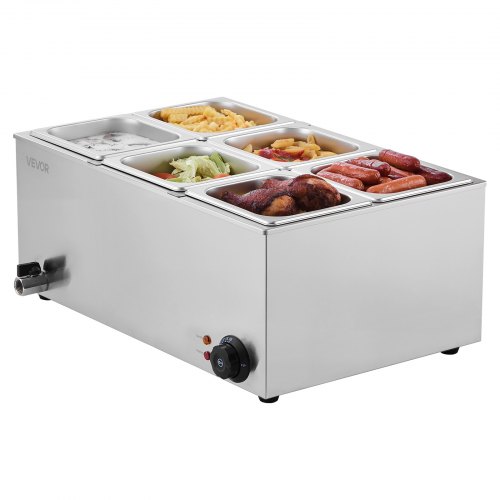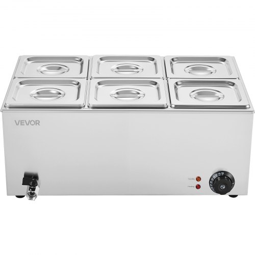 VEVOR Scaldavivande Commerciale, Scaldavivande Elettrico in Acciaio Inox da 1500 W con Coperchio in Vetro, Bagnomaria da Banco a 6 Teglie di 1/2, con Riscaldamento Rapido e Mestoli Forati