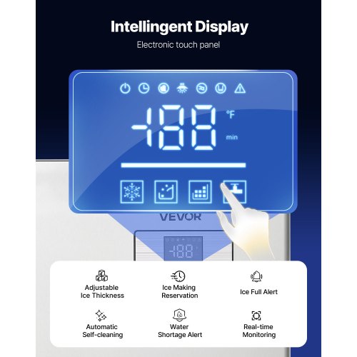 VEVOR Testa per Macchine per Cubetti di Ghiaccio Commerciali, in Acciaio Inox da 181 kg con Pannello di Controllo Intelligente, Autopulente, Spessore Regolabile, per Ristoranti, Bar, Solo Testa