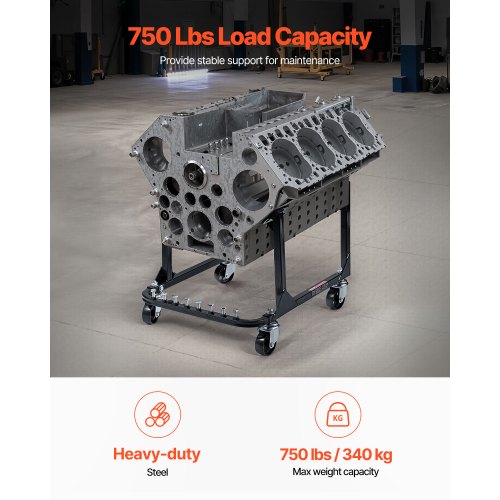 VEVOR Supporto Motore a U, Sollevatore Motore Capacità di Carico 340 kg, Robusto Supporto in Acciaio con 4 Ruote Girevoli e 4 Posizioni di Aggancio, per Motori BB-CHEVY e GEN-1 SB-CHEVY
