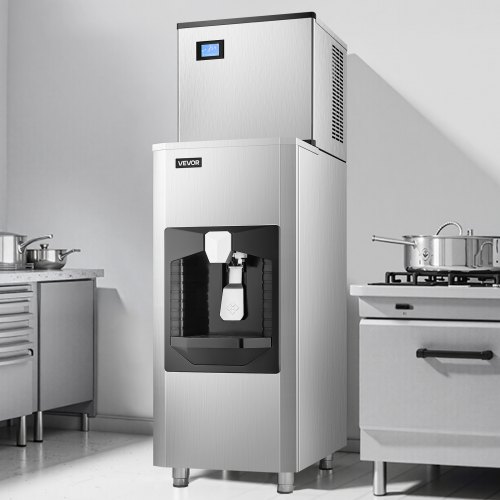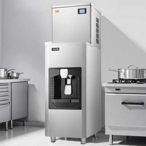 VEVOR Macchina di Ghiaccio Commerciale 226,8 kg/giorno, Contenitore per Ghiaccio 80 kg con Erogazione Automatica del Ghiaccio (9 kg/min), Autopulente con Schermo a Tocco per Bar Ristoranti