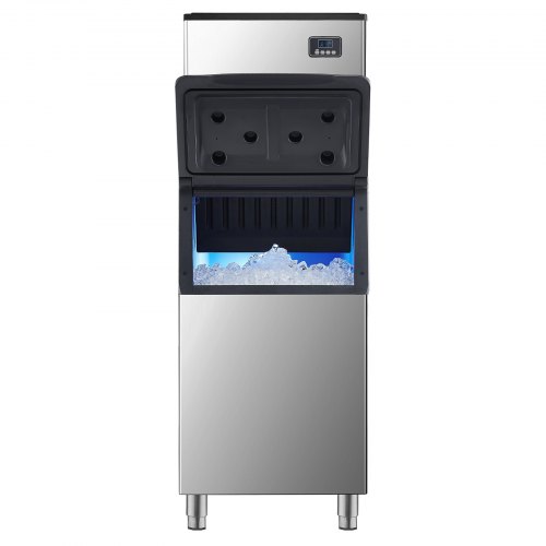VEVOR Macchina per Ghiaccio Produttività ca. 249,5 kg/24 h, con Contenitore di Stoccaggio da 136 kg, Macchina per Ghiaccio Autopulente Schermo a Tocco per Bar, Caffetteria, Ristorante
